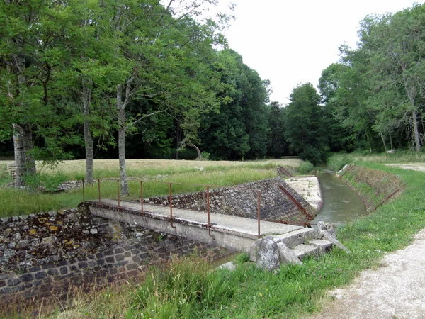 A footbridge over an irrigation ditch in Saint Fargeau.